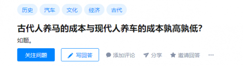 无独有偶,仔细翻翻知乎,发现居然还有人发帖问道:《古代人养马的成本与现代人养车的成本孰高孰低?》。
