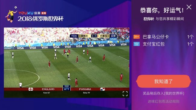 今年的世界杯,优酷作为首家拿下直播权的主流视频平台,让用户随时随地看世界杯变为可能,携手央视开启了世界杯直播的手机元年。为了给用户提供更加互联网化的立体观看体验,优酷在本次世界杯直播期间推出了包括进球就下红包雨、集卡瓜分两亿红包、自选特色聊球等多种玩法。在打破传统观看场景限制的同时,因为比赛的不确定性为用户观看提供了更多惊喜。