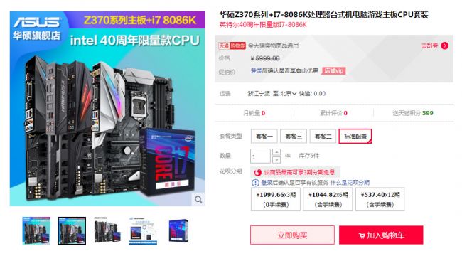 标准套餐搭配的是ROG STRIX Z370-E GAMING主板。该套餐售价5999元。