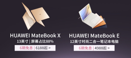 HUAWEIMateBookE笔记本电脑不仅能当笔记本用,还可与键盘拆分作为平板单独使用。在华为商城(vmall.com)购买HUAWEIMateBookE笔记本电脑,售价4988元起,还可尊享6期免息。