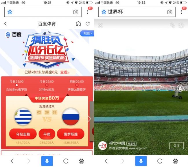针对这场全民狂欢的足球盛宴,不管是真假球迷都可以参与到比赛当中,都可以通过世界杯专题页参与到“世界杯红包”和“猜胜负赢奖金”两大特色活动。在世界杯期间每天12:00-12:20进入红包领取入口,普惠式的派奖方式将保证人人都有红包拿。此外,在世界杯专题页的竞猜版块,以“傻瓜式”的操作体验预测比赛结果,一旦“预言应验”,将有极为丰厚的现金回报。如果邀请好友一起参与,赢球奖金还会翻倍,邀请越多,翻倍越多。此外,百度搜索发挥其技术优势,通过AI+AR技术的结合,让球迷即使身在北京也可以体验莫斯科球场的激烈赛况。
