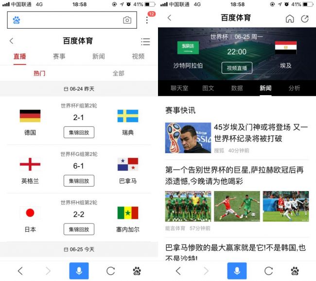 百度体育搜索全新升级 直播精彩赛事