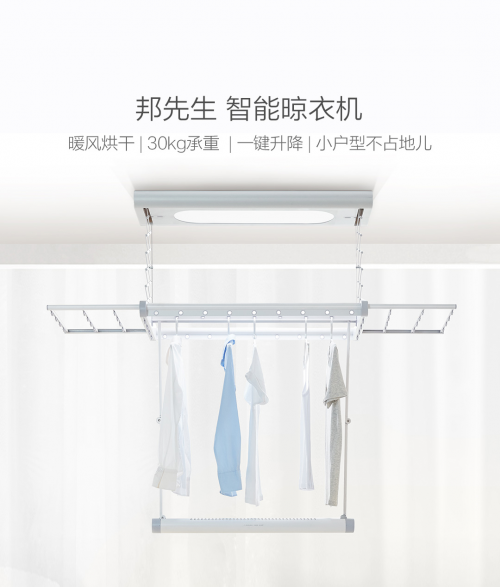 打造智能阳台空间,选择邦先生电动晾衣架,一键开启晾晒新方式。两款机型供选择,邦先生——邦你享受生活!