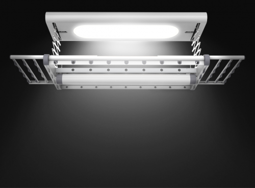 顶部配备LED遥控触板操作晾衣机升降、烘干功能的同时,还支持照明功能。机身内置700mm*200mm超大发光面板,照亮阳台各个角落,减少晾晒过程中因衣物过多,遮挡光线的问题。