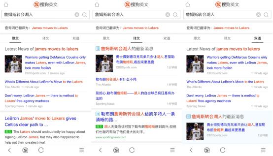 (图:搜狗英文搜索提供的三个搜索结果页面)