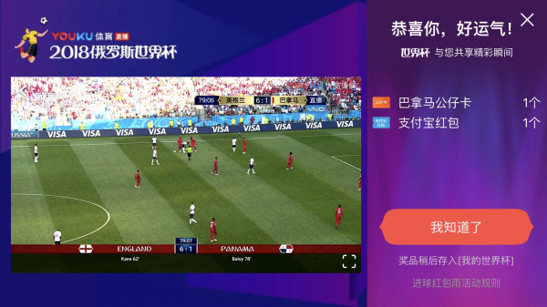 根据规则,昨晚的两场比赛,英格兰队2:0胜于瑞典队,俄罗斯与克罗地亚常规时间1:1战平,一晚狂撒4场红包雨。迄今为止,优酷已经在世界杯直播中下了百余场红包雨,发放金额累计数千万元。