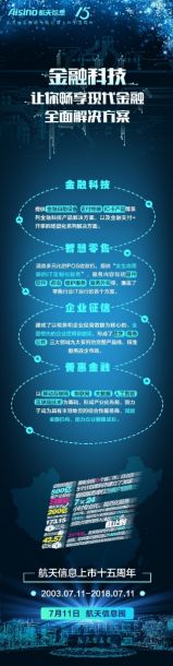 航天信息致力于成为金融领域具有主导地位的综合性服务商,以移动互联网、物联网、大数据、人工智能、区块链技术为基础,形成金融科技服务与科技金融服务两大业务为支撑的产业布局,不断深化优化产业链,赋能金融机构,助力企业健康成长。2017年,在航天信息与银行等金融机构深度合作形成良好商业模式的基础上,航天信息金融产业板块实现营收同比增长46.82%。