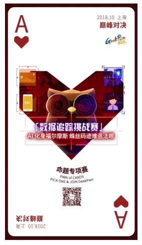 作为全球最大关注智能生活的黑客大赛,GeekPwn2018将前瞻性地针对时下大热的人工智能与大数据技术,与腾讯安全反诈骗实验室联合举办数据追踪挑战赛,于今年7月正式开赛。你能利用AI黑科技追寻“犯罪分子”的行动轨迹吗?你能通过对受害者手机中安装的病毒APP进行分析,在海量的病毒数据中揪出幕后黑手吗?你能将美剧中热火朝天的“天眼系统”梗,变成现实吗? 如果你的答案是肯定的,那么,GeekPwn2018将成为你大展身手的舞台。