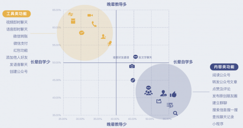图7:老年人微信自学功能与晚辈反哺功能象限图
