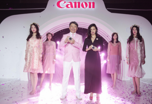 佳能(中国)副总裁石井俊幸与时尚新锐摄影师陈漫共同发布粉色版EOS M100