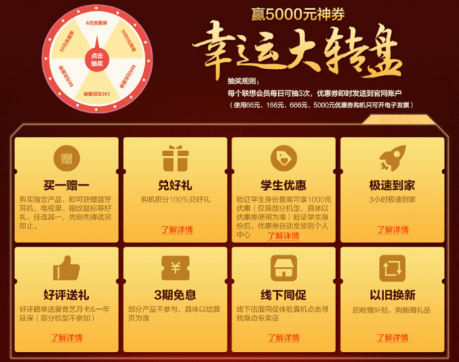 今年联想暑促推出了大转盘红包雨抽神券活动!即日起至9月3日扫描二维码或者去联想门店砸金蛋即可抽取红包神券,666元、166元、66元、6元等不同金额的神券,只要抽中,现场购机就能抵现金使用。