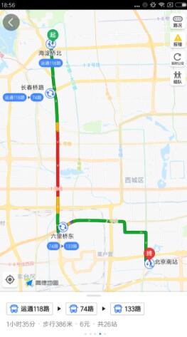 驾车出门前先查路况拥堵情况,已经成为不少人的出行必选项,现在公交出行的用户也可实时查看需要乘坐的某公交路线的实时路况了。高德地图v8.65新版在公交规划页面中接入了路况数据,并在图面上渲染为红黄绿反映拥堵情况的路况彩虹线,方便用户直观查看,辅助用户做出行决策。