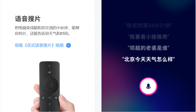 现在小米电视除了界面简洁,内容丰富,还支持语音操作外,搭配的蓝牙智能语音遥控器上11键按键的遥控器,也是为了能让用户实现“盲”操作设计的。当时,这个设计是小米电视史上最大的减法,谁都不敢想象,在首次宣布小米电视实现这样极简遥控设计的时候,却获得了不少观众的共鸣。