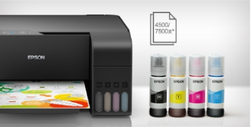 *1 打印量基于爱普生的评价方法使用ISO/IEC 24712 提供的文本和彩色图像混合测试样张得出。在无需对打印机初始化充墨的使用状态下,黑色墨瓶的测试打印量为约4500 页、彩色墨瓶(青色+洋红色+黄色)的测试打印量为约7500 页。为了确保打印质量,打印机初次使用时,随附墨瓶中的部分墨水将用于打印机的初始化充墨,所以打印量可能较前述测试打印量低约15%。若用户使用普通纸在标准质量下每周打印约30页,则几年不用换墨水。