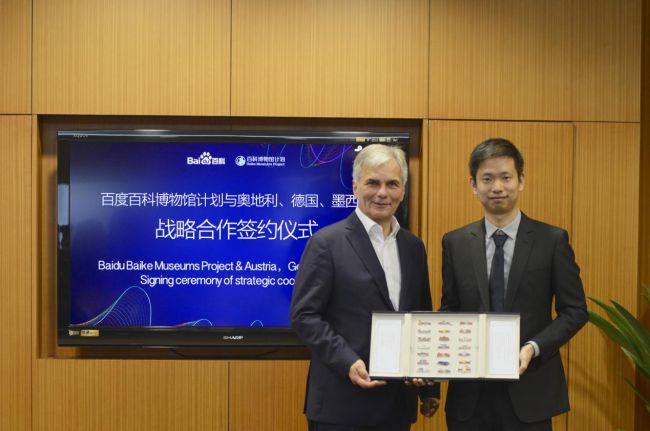 仪式上,在百度搜索公司首席架构师谭待和奥地利前总理法伊曼等的见证下,百度百科负责人陈合春与墨西哥前总统之子埃内斯托·塞迪略、奥地利前总理法伊曼合伙人彼得·霍斯克以及德国前副总理加布里尔合伙人马蒂亚斯·欧拉-罗尔签署合作协议,同时,百度百科还为欧中商务中心(CBCN)颁发授权函,授权其协助推进百科博物馆计划与墨、奥、德三国博物馆的合作,多方将共同在未来一年内大力推进墨西哥、奥地利和德国三国博物馆与百度百科博物馆计划的合作落地,促进三国文化在中国的传播,丰富中国网民对欧洲、美洲文化的认知,提升线下博物馆的游览体验。