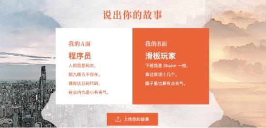 点击活动页面中“上传你的故事”按钮,提交个人信息和你的两面故事,上传成功后,审核通过即视为参赛。