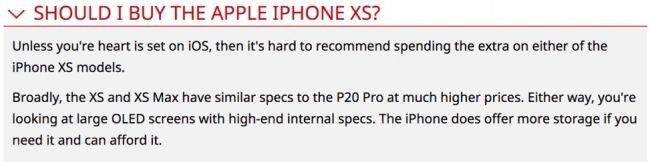值得一提的是,不仅DxOmark,英国排名第一的消费电子科技「TechAdvisor」也针对iPhone XS和华为P20 Pro进行了对比,并得出了「除非你十分心水iOS系统,否则没有必要在iPhone XS系列上花费更多的钱」的结论。拍照方面,TechAdvisor对华为P20 Pro的AI场景识别优化、多倍变焦以及6秒手持超级夜景赞不绝口。华为P20 Pro依旧是众多旗舰手机拍照的标杆产品。