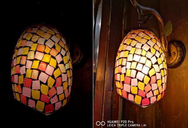 同时,华为P20 Pro通过AI算法对多张照片进行智能的叠加合成,实现暗光有细节,高亮不过曝的夜景照片。从上图中也能看到,在环境光源比较复杂的情形下最为考验手机的夜景拍摄能力,虽然两款手机的成像效果均属第一阵营,但仔细观看可见右边的华为P20 Pro拥有更好的高光抑制能力,也使得建筑物顶部的钟表色彩还原度更真实,而且建筑物表面得益于更大的像素,细节明显更加丰富,噪点控制都非常优秀。