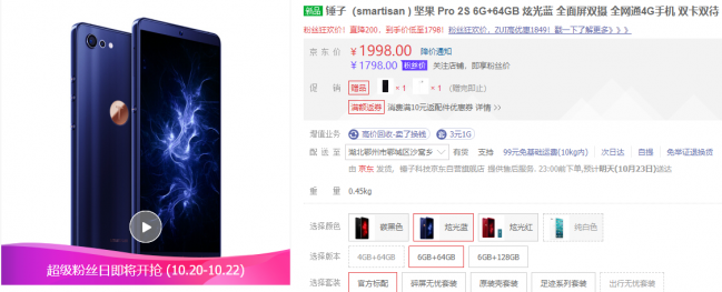 硬件和系统方面,坚果Pro2S搭载了骁龙710处理器,配备4G/6G运存+64G/128G存储组合,其中4+64GB版近期售价1798元,6+64GB版1998元,6+128GB版2298元。运行全新的SmartisanOS6.6.5系统,新增TNT大屏幕操作系统与全新的“无限屏”功能,配备线性马达,流畅度和功能性都有不错表现。