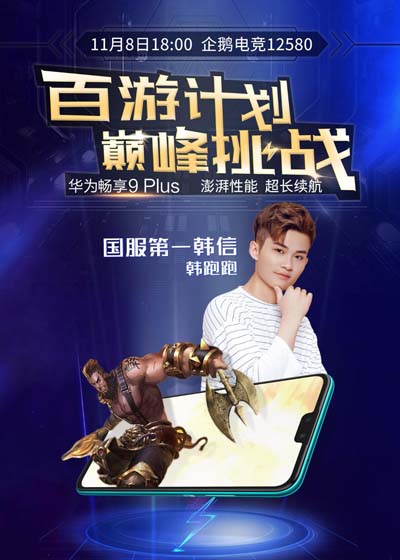 提起国服招牌韩信韩跑跑,相信无人不知无人不晓。韩跑跑加入企鹅电竞短短几个月,粉丝数量便是突破300万,成为王者荣耀人气主播。他以一首招牌韩信而闻名,除了犀利的操作和完美的团战意识之外,其更为粉丝称道的是他对粉丝平易近人的态度和良好的心态。而近日,有消息称,韩跑跑将于11月8日牵手千元旗舰华为畅享9 Plus在王者之谷上演一场精彩之战。