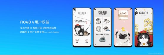 此次,华为主题也迎来全面升级,将带来更多彩的体验方式。此次发布会还宣布了华为主题X吾皇万睡定制主题首发,nova 4用户可免费使用。