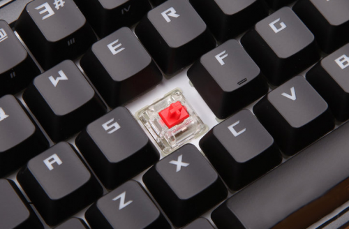 颜值尚且如此之高,性能就更加不如多说了!华硕ROG FLARE耀光机械键盘采用德国原厂的CHERRY MX RGB键轴,共有黑青茶红四种轴体可供选择。对于游戏玩家来说,黑轴触发键程短的优势简直再适合不过了。而青轴超强的段落感与清脆的声响,则更加适合办公打字的用途。除了键轴以外,耀光机械键盘哈具备可存储六套按键配置文档的板载内存,以及实时宏记录,对于游戏党而言,防鬼键和全键无冲的技术也同样具备。