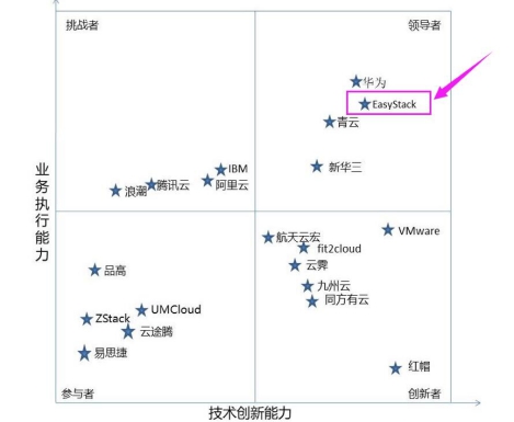 “2018中国金融私有云IaaS厂商市场竞争力象限”主要从技术创新能力和业务执行能力两个维度对私有云IaaS提供商进行了竞争力分析。