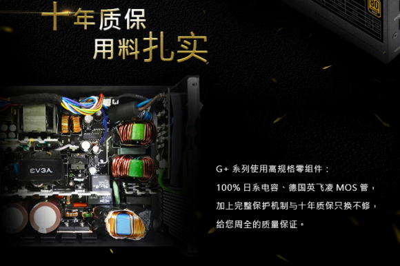 EVGA G+系列电源不仅在架构上作出了升级,从多路+12V输出改为单路+12V输出;还在长度上有所缩短,整体更为紧凑。它在运行时更加安静,而且性能也有了改善。另外在10年质保的基础上,还推出了48小时换新和90天无忧升级的省心服务。