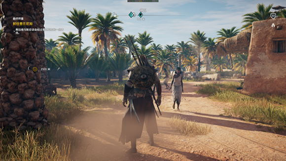 《刺客信条:起源》开启2K分辨率和极致画质后,一块苍翠的绿洲呈现在眼前,犹如镶嵌在沙漠的边缘的一块宝地,花草树木显示锐利清晰,都有着非常明显的阴影呈现。极致画质下,游戏光影的呈现,仿佛置身于烈日的烘烤下,让脚下的沙石路感觉是烫脚的,万点光亮闪耀。