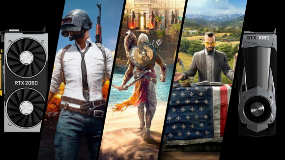 得益于GeForce GTX 10系列显卡出色的性能表现,过去一年各大游戏公司推出的新游亦得到热卖。《绝地求生:大逃杀》、《刺客信条:起源》和《孤岛惊魂5》三款对显卡性能要求较高热门游戏,它们在搭载GeForce GTX 1060和更新后Game Ready驱动作用下能满足玩家在1080p分辨率下畅玩需求,而采用全新Turing架构的GeForce RTX 2060性能比GeForce GTX 1060要高是必然的,那到底游戏实测时性能会有多大提升,下面我们来看看。