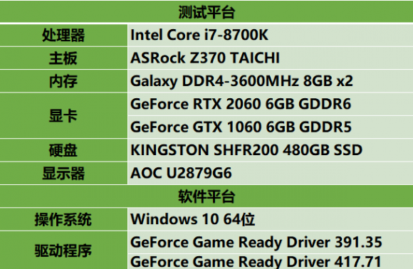 下面我们将采用拥有NVIDIA RTX技术的GeForce RTX 2060显卡与 “甜点卡”GeForce GTX 1060显卡进行游戏实测性能对比,“甜点卡”美誉终将花落谁家,我们一起印证。