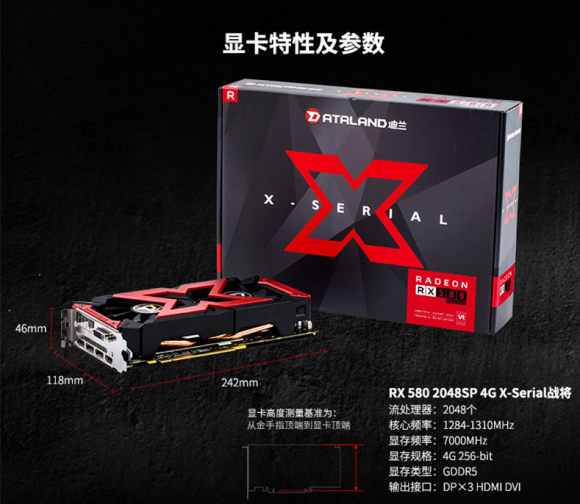迪兰RX 580 2048sp 4G X-Serial战将这款显卡是迪兰非常经典的战将系列之一,高达2048个流处理器是亮点,而核心频率和显存频率也都高达1310MHz和7000MHz,更有AMD Radeon显示技术加持,画面不撕裂、不卡顿,在各大主流游戏中都有很不错的表现,定位于1080P,是一款性价比颇高的甜点级显卡。