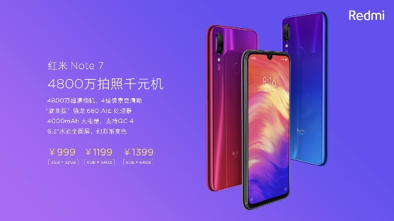 最后一个,也是最新发布的死磕性价比的红米Note 7,这款产品有四大主要卖点:4800万超清相机,“满血版”骁龙660,6.3英寸水滴全面屏和4000毫安时大电池。搭载的660满血版处理器,性能十分强悍。在苏宁易购目前售价为:3+32GB 999元;4+64GB 1199元;6+64GB 1399元,性价比确实很高。