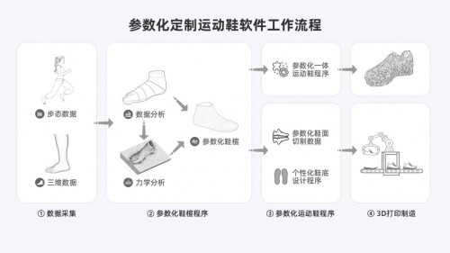 目前LuxCreo清锋时代针对3D打印鞋底开发的定制化软件已完成内测版本。该软件将根据每位客户的脚型和足压数据进行智能分析,生成符合人体工程学的个性化鞋底数据及模型,再通过LuxCreo极速打印机进行生产制作。个性化定制不仅能满足大众消费者对于鞋舒适性的高层次要求,还将广泛应用于步态和形体矫正等功能性领域。