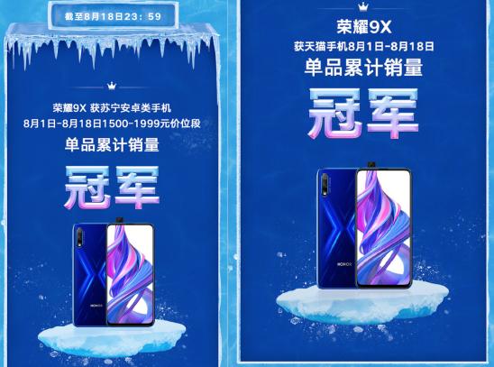 荣耀9X斩获多平台单品销量冠军 实至名归