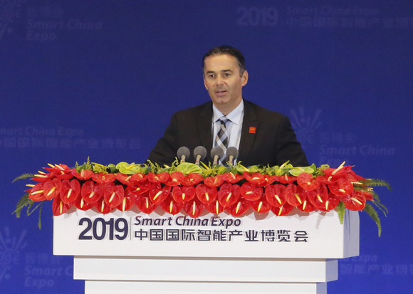 8月26日上午,2019智博会“大数据智能化高峰会”上,英特尔全球高级副总裁兼网络与自定义逻辑事业部总经理丹尼尔·麦克纳马拉表示,英特尔正处在从以PC为中心到以数据为中心的转型中。“来到中国智博会我觉得非常合适,因为我相信在这样一个智能网络的转型过程中,英特尔会极大地改进我们的生活、工作以及享受各种服务的体验。”