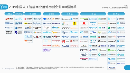 2019年,人工智能的应用落地进一步深化,实现营收规模化增长成为诸多AI企业的主要目标。亿欧智库连续第二年推出“中国人工智能商业落地初创企业100强榜单”,通过企业2019年AI相关业务预期营收这一指标来衡量人工智能初创企业的最新商业化进展。榜单以非上市的、主营业务由人工智能及关联技术驱动的初创企业为样本框,采用企业问卷调研的方法进行一对一获取,并辅以多方验证,形成最终榜单。