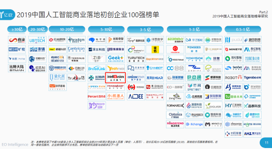 在“2019中国人工智能商业落地初创企业100强”榜单的评选中,2019年预期营收被作为其中一项重要指标来衡量人工智能初创企业的最新商业化进展。亿欧智库认为,经历了早期在算法技术方面的争夺战,依靠科研实力和商业落地两条腿走路已成为人工智能初创企业的共识。