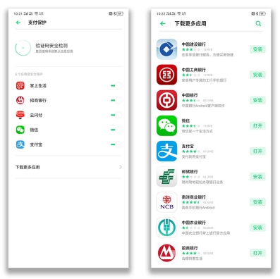 ColorOS 6 则针对上述情况做了针对性保护,从【设置】-【安全】里就能看到【支付保护】功功能。该功能会默认对已经安装的金融相关软件(目前已支持20余款金融软件,后续还会继续添加)进行针对性检测,让支付的每一个环节都在把控中。