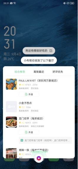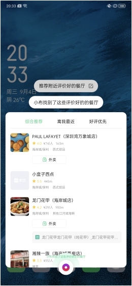 值得一提的是,基于与美团语音的合作,Breeno 还支持根据评价来查找美食,这样用户就能够挑选到满意的高评价餐厅。