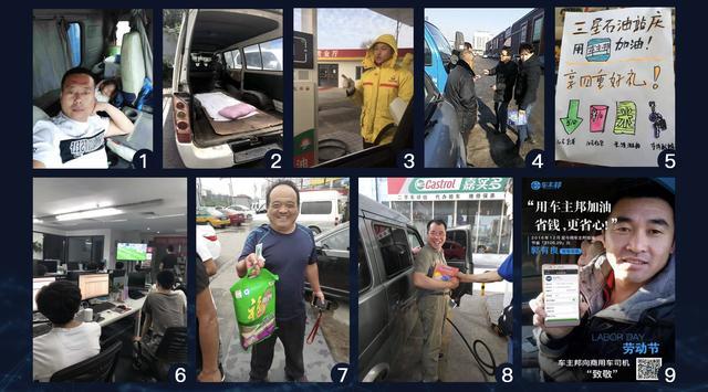 图9:这张照片中的主人公,名叫郭有良,他是一名快狗打车的司机。"也是车主邦创业早期,我们团队某次去做地推工作时,碰到了这位郭大哥。我们的合伙人孙总说'你试试车主邦',大哥说我用过。当时孙总非常'较真',与大哥确认说:'你确定用的是车主邦吗?你拿出手机我看看?'没想到,那位大哥真就拿出了他的手机,并打开了车主邦官微,向孙总展示了这一幕。当时,我们团队就抓拍下了这张照片,并把这张照片发到车主邦的工作群里。我们的创始人戴震感动的热泪盈眶……2018年劳动节时,我们又联系到了这位司机大哥,与其商量后,我们就请了这位大哥做我们的司机代言人。"王阳津津有味地分享着。