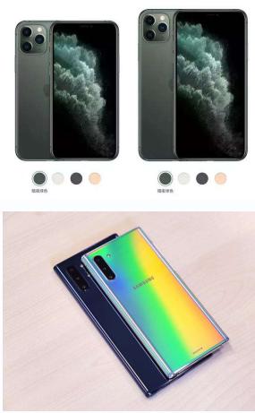 在外观方面,与前代产品相比,苹果的机身材质并没有改变,除了iPhone11采用了玻璃+铝金属的设计之外,iPhone11 Pro和iPhone11 Pro Max均采用了玻璃+不锈钢的设计。而三星Note10系列一直坚持的偏向直角的过渡设计,使得手机整体更加硬朗、方正,棱角感十足。世界上独一无二的莫奈彩配色,还让三星Note10系列在不同角度或者强度的光线下,都宛如一幅即兴描绘的油画,大胆的配色让人眼前一亮,艺术感十足。