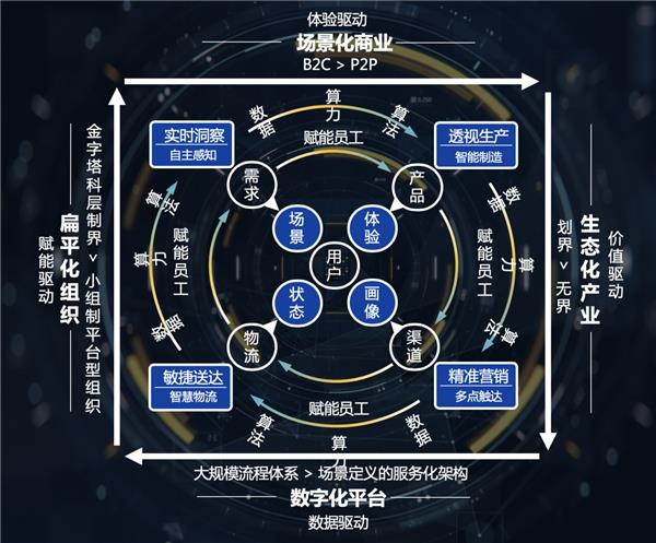 数字经济时代,企业利用数字技术,从需求、产品、物流和渠道四个方面出发,创造极致的用户体验,对商业模式进行重构。人工智能与数据工具帮助企业实时洞察用户需求,透视生产,赋能智能制造,实现智慧物流,同时,通过精准营销多点触达目标用户群。