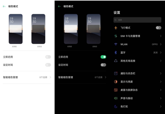 不止如此,ColorOS 的暗色模式无需三方应用适配,即可获得几乎完美的三方应用暗色模式,无缝在系统应用与三方应用间切换,同时暗色模式还会带来续航的显著提升。