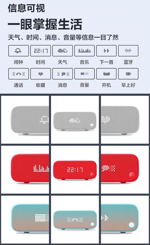 不过上文中提到的点阵屏不只反馈情绪,还能准确显示日常的生活信息,例如天气、时间、闹钟、音量、来点信息等,并且信息显示一目了然,符合人们日常获取信息的习惯,家里的老人和孩子也能得心应手,让日常生活信息变得唾手可得。除此之外,点阵屏还可以根据外部光线强弱来自适应调节亮度,即使中午光线变得强弱的也能看清楚,而熄灯之后,柔和的光线也不影响用户的睡眠和休息,是不是很赞!