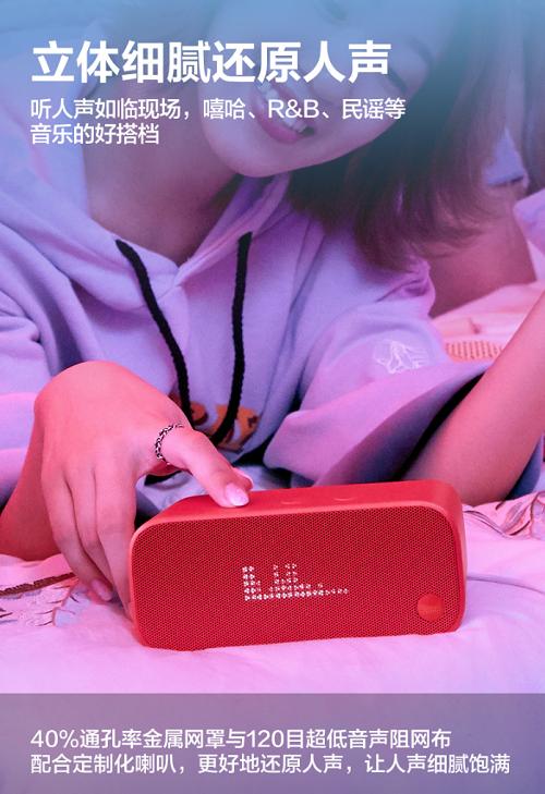 音乐是年轻人人日常不可或缺的调味剂,不仅能舒缓心情,又能帮助追求自己的音乐爱好,针对这一需求,天猫精灵IN糖在音质上不断打磨,迎合年轻人对极致音乐的享受,搭载了40%通孔率的金属网罩,配上120目超低声阻网布,确保真实还原人声,像是身处演唱会现场,让用户随时享受质感音乐,“乐”动满满。