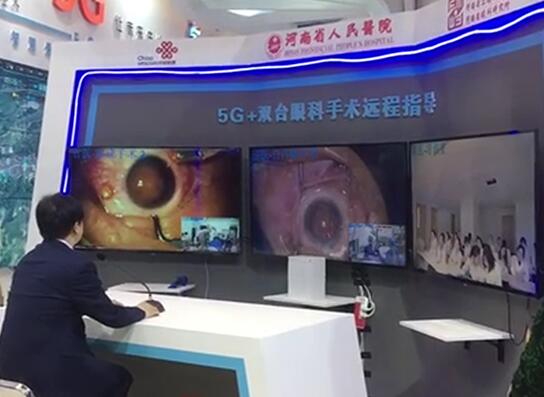 在现场,河南省人民医院眼科医院眼底病专家、常务副院长宋宗明院长利用5G技术远程指导两台眼科手术,同时,在省人民医院培训室,医生们同样通过5G技术进行4K高清的远程观察手术,成为会场上的亮点。5G的大带宽、低延时、大连接功能实现了多路视频实时上传,实现了展示区、两个手术室、培训室四方的实时互动,并且4K高清的图像呈现,也让沉浸式交互体验更为突出,5G+4K拉近了空间距离,三地仿佛融为一体。