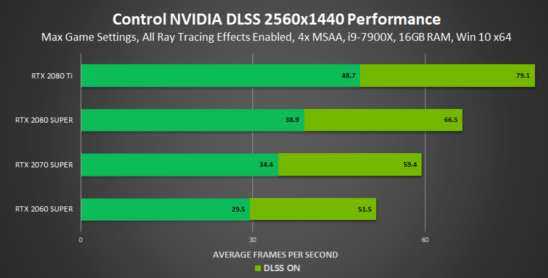 除了在画面上突破的光线追踪,《Control》中还支持NVIDIA DLSS技术。DLSS技术能够为游戏性能表现带来巨大的提升,在极高分辨率最高画面特效下,开启DLSS后游戏帧数有着近一倍的提升。而这项技术则同样得益于图灵显卡,GPU中的Tensor Core利用AI技术进行优化计算,在几乎不损失画面质量的同时带来性能上的大幅提升。