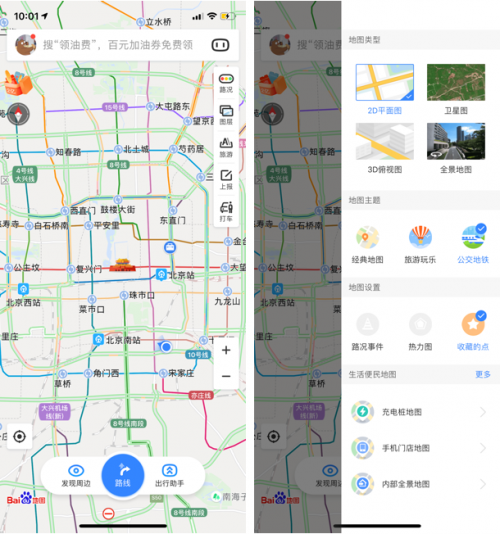 对于广大的新能源车主来说,出行在外时肯定绕不开“给车充电”的话题。如果想在陌生地区、路段更快找到充电桩,推荐车主们用百度地图的充电桩地图。打开百度地图后,右侧有一排按钮,点击其中的“图层”按钮后再往下看,就能找到充电桩地图。