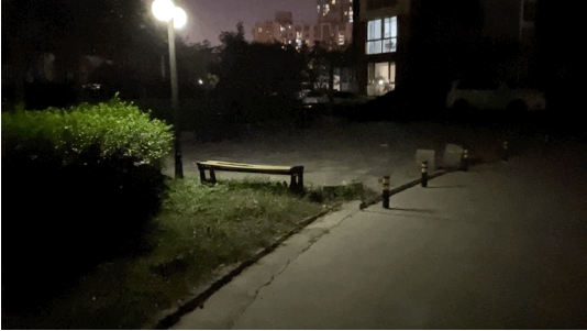 华为Mate30 Pro夜间视频亮度会更高,路灯画面细节比较丰富,在灯光较弱的灌木部分也能看见灌木细节,颜色还原也很准确。由于OIS防抖加持,可以看到华为Mate30 Pro画面稳定性比较好。iPhone11 Pro Max视频亮度要差华为Mate30 Pro不少,尽管也拥有OIS光学防抖,但由于拍摄时在手持移动,因此画面会有电子防抖算法下的运动模糊现象,画面质量要差华为Mate30 Pro一些。